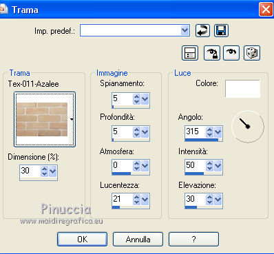 13. Effetti>Effetti di trama>Trama - seleziona la trama Tex-011-Azalee, colore bianco #ffffff.