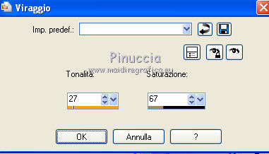 Regola>Tonalità e saturazione>Viraggio, con i settaggi precedenti.
