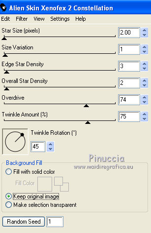 Ripeti l'Effetto Constellation, con gli stessi settaggi ma cliccando una volta su Random Seed.