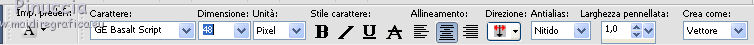 Attiva lo strumento Testo , font GE Basalt Script, dimensione 34 o 48 (dovrai regolare a seconda del testo e della versione di PSP che stai usando),