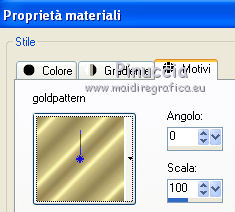 Passa il colore di primo piano a Motivi e seleziona il motivo "goldpattern", con i seguenti settaggi: