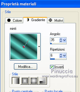 Passa il colore di sfondo a Gradiente, e seleziona il gradiente "minti" con i seguenti settaggi.