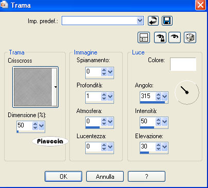 2. Effetti>Effetti di trama>Trama - seleziona la trama Crisscross, con i seguenti settaggi.