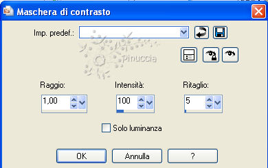 Regola>Messa a fuoco>Maschera di contrasto, con i settaggi precedenti.