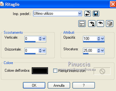 Effetti>Effetti 3D>Sfalsa ombra - 2 volte con i seguenti settaggi.