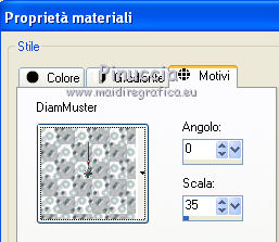 Passa il colore di sfondo a Motivi e seleziona il motivo DiamMuster con i seguenti settaggi.