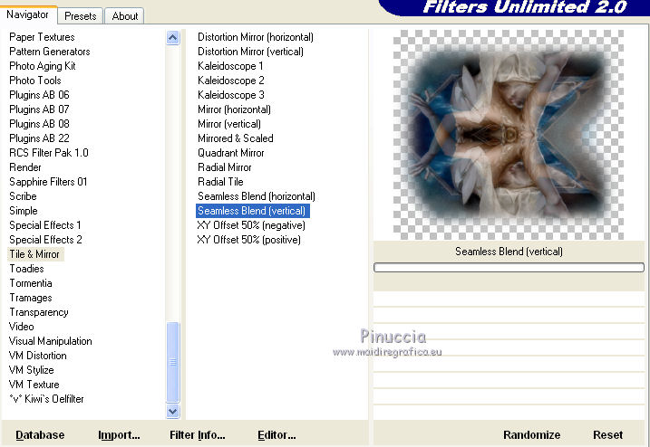 Effetti>Plugins>Filters Unlimited 2.0 - Tile & Mirror - Seamless Blend (vertical).