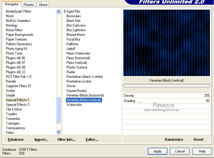 3. Effetti>Plugins>Filters Unlimited 2.0 - Special Effects 1 - Venetian Blinds (vertical).