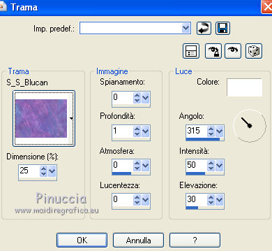 2. Effetti>Effetti di trama>Trama - seleziona la trama Ss Blucan con i seguenti settaggi.
