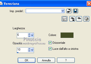 Effetti>Effetti di trama>Veneziana, con i settaggi precedenti.