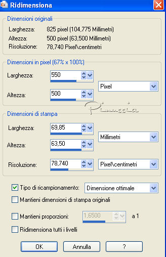 Immagine>Ridimensiona, a 550 x 500 pixels, mantieni proporzioni e tutti i livelli non selezionato.