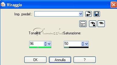 57. Regola>Tonalità e saturazione>Viraggio, con i settaggi precedenti.