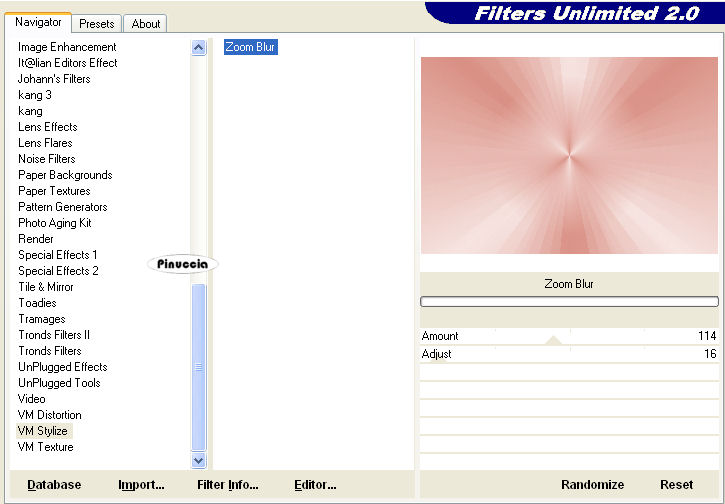 4. Effetti>Plugins>Filters Unlimited 2.0 - VM Stylize - Zoom blur.