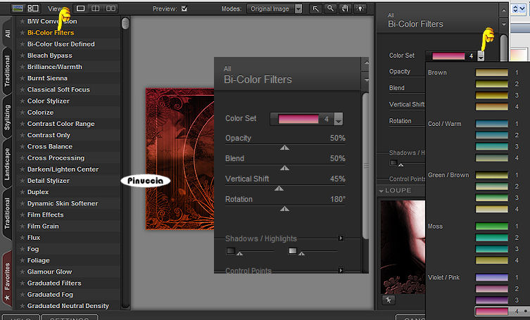 36. Effetti>Plugins>Nik Software - Color Efex Pro 3.0 - Bi-color Filters con i seguenti settaggi.