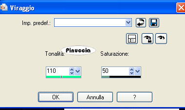 22. Regola>Tonalità e saturazione>Viraggio, con i settaggi precedenti.