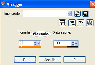 Regola>Saturazione e tonalità>Viraggio, con i settaggi usati al passo 2.