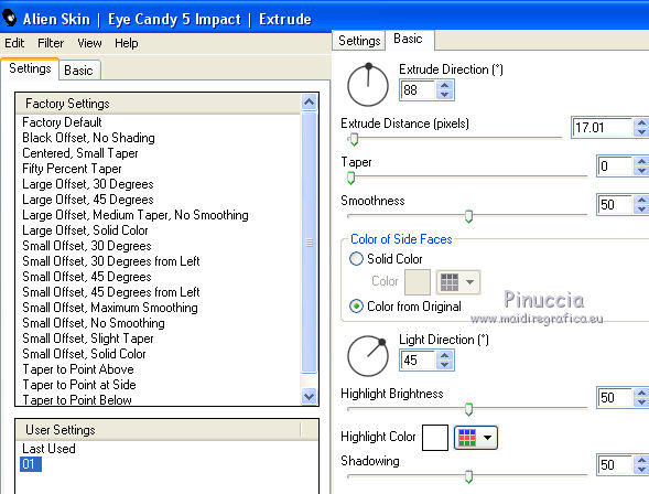 11. Effets>Modules Externes>Alien Skin Eye Candy 5 Impact - Extrude