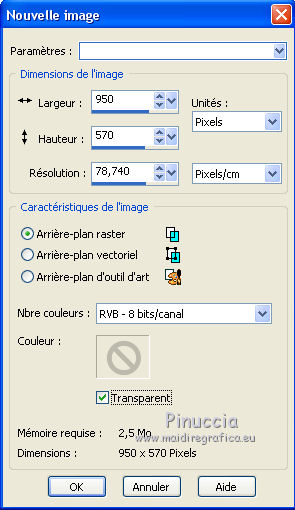 1. Ouvrir une nouvelle image transparente 950 x 570 pixels.