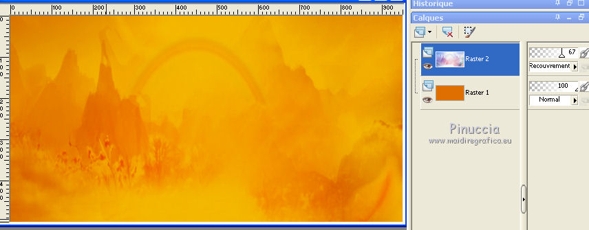 4. Placer le calque en mode Recouvrement et réduire l'opacité à 67%.