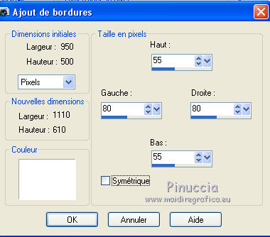38. Image>Ajouter des bordures, symétrique décoché, couleur blanche #ffffff.