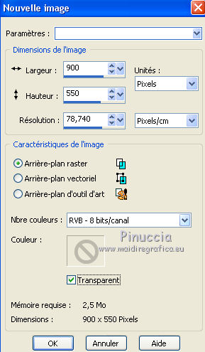 2. Ouvrir une nouvelle image transparente 900 x 550 pixels.