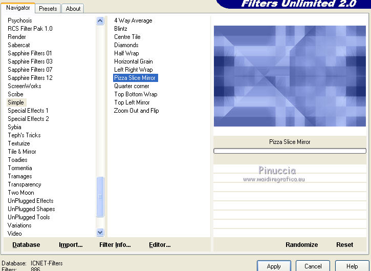 8. Effets>Modules Externes>Filters Unlimited 2.0 - Simple - Pizza Slice Mirror.