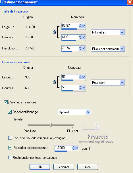 13. Image>Redimensionner, à 55%, redimensionner tous les calques décoché.