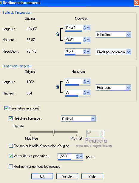 Image>Redimensionner, à 85%, redimensionner tous les calques décoché.