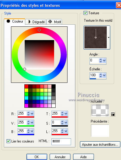 Ouvrir la palette de la couleur d'arrière plan, cocher Texture