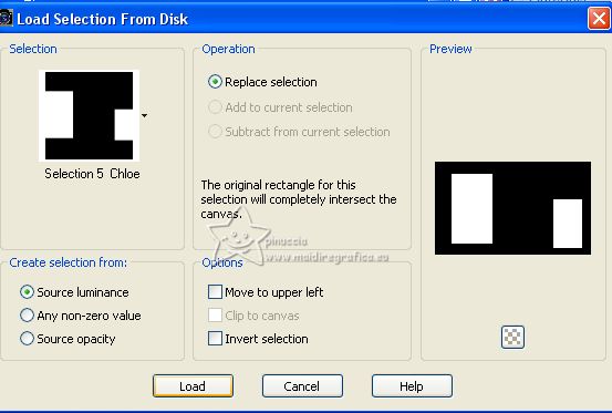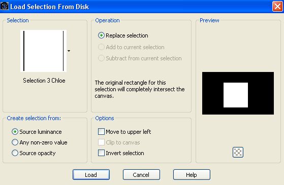 15. Selections>Load/Save Selection>Load Selection from Disk.
