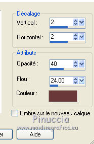 Effets>Effets 3D>Ombre portée, couleur d'avant plan #6b393b.