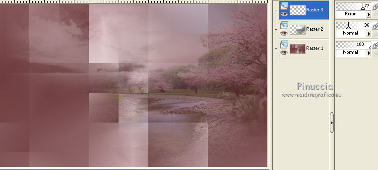Placer le calque en mode Écran et réduire l'opacité à 77%.