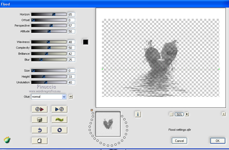 48. Effetti>Plugins>Flaming Pear - Flood, cambia horizon con 92 e ok.