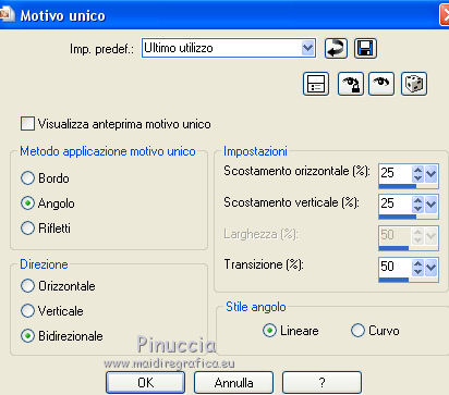 5. Effetti>Effetti di immagine>Motivo unico, con i settaggi standard.