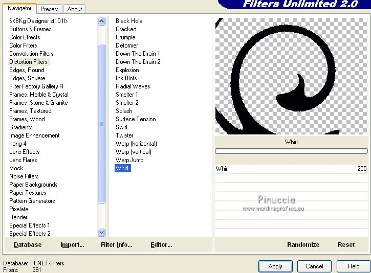 Effetti>Plugins>Filters Unlimited 2.0 - Distortion filters - Whirl.