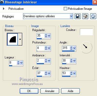 26. Effets>Effets 3D>Biseautage intérieur, comme précédemment.