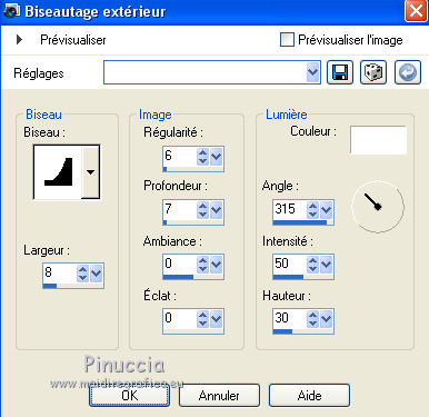 43. Effets>Effets 3D>Biseautage extérieur, comme précédemment.