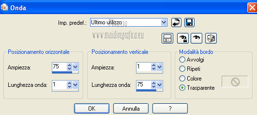 Effetti>Effetti di distorsione>Vento, con gli ultimi settaggi (da sinistra, intensità 100).