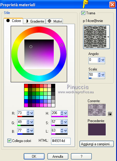 e seleziona Trama. Cerca la trama 14cre@nnie e imposta i seguenti settaggi.