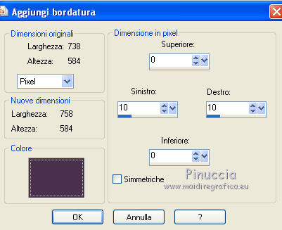 Immagine>Aggiungi bordatura, 10 pixels a destra e a sinistra, simmetriche non selezionato, con il colore di primo piano.
