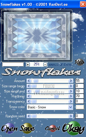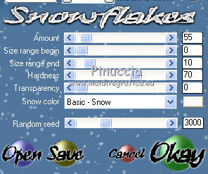 Effetti>Plugins>VDL Adrenaline - Snowflakes - imposta Random Seed con 2000 e ok.