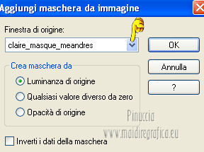 Seleziona la maschera claire_masque_meandres, con i seguenti settaggi: