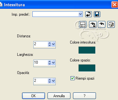 31. Effetti>Effetti di trama>Intessitura, con i settaggi precedenti.