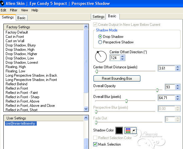 13. Effetti>Plugins>Alien Skin Eye Candy 5 Impact - Perspective Shadow.