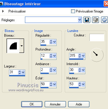 29. Effets>Effets 3D>Biseautage intérieur, comme précédemment.