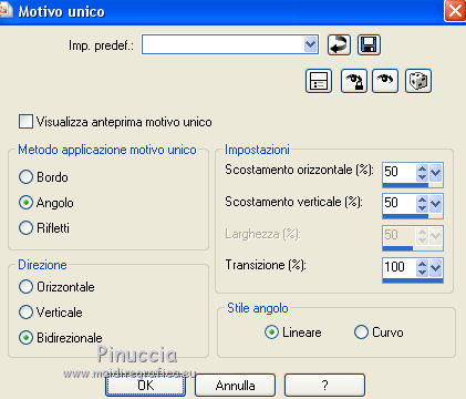 12. Effetti>Effetti di immagine>Motivo unico, con i settaggi standard.