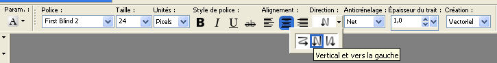 51. Activer l'outil Texte , font First Blind 2 - direction verticale.