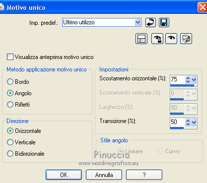 13. Effetti>Effetti di immagine>Motivo unico, con i settaggi standard.