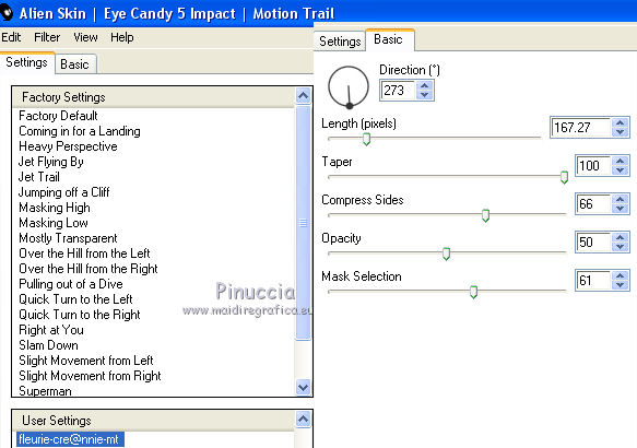 55. Effetti>Plugins>Alien Skin Eye Candy 5 Impact - Motion Trail.