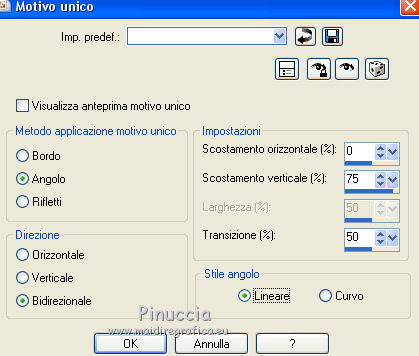13. Effetti>Effetti di immagine>Motivo unico, con i settaggi precedenti.